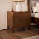 Тумба прикроватная RUBY (60) — это элегантное и функциональное дополнение для вашей спальни. Модель отличается компактными размерами и оснащена двумя просторными ящиками для хранения мелочей, поддерживая идеальный порядок в зоне отдыха. Как и вся коллекция, тумба выполнена из ясеня, чей богатый текстурный рисунок подчеркивает природную красоту и роскошь мебели. Изящные ножки придают конструкции визуальную легкость, гармонично сочетая классическую эстетику с современным дизайном. Эта тумба станет стильным акцентом, завершающим облик спальной зоны.
